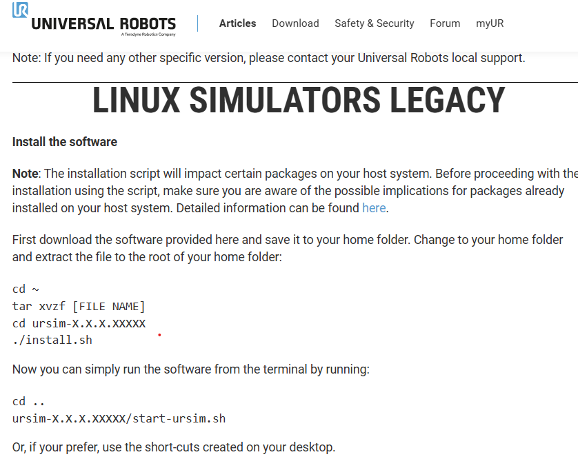 2- Extract the URSim_Linux-X.X.XX.tar.gz file via the terminal: tar xvzf URSim_Linux-X.X.XX.tar.gz